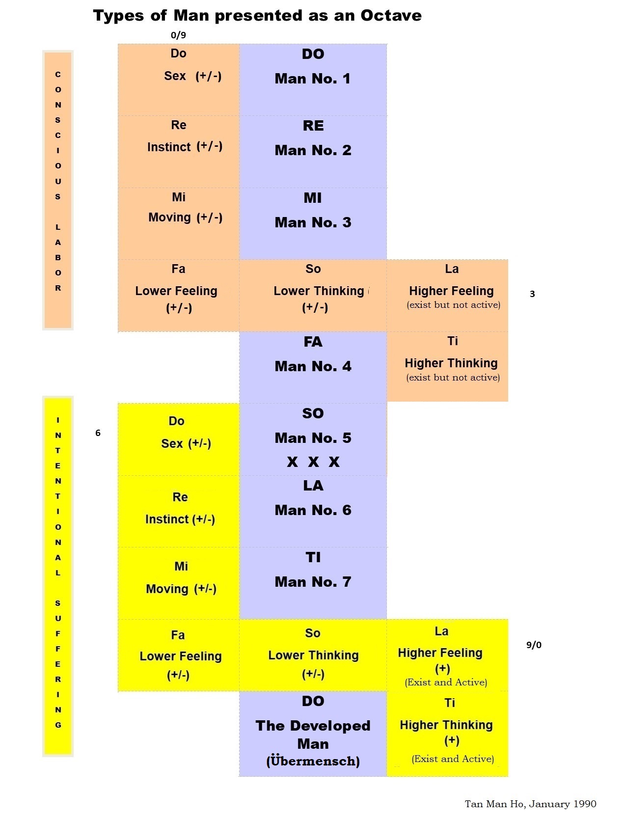 "The Quantum Octave Implication of the WORK is to ascend to Man No. 7 (if you can achieve it) and descend (in awareness if you can) along the (our) own position as a microcosm having a quantum octave of (our) own limited within the grand universal Quantum Octave of the (our)  Macrocosm, in order to achieve our own conscious biocosmic Organic Life, technocosmic Synthetic life and quantacosmic Cosmic life harmony and general well being to continuing living well within our own real world reality at the MI-FA Interval of the (our) Ray of Creation.   The WORK is always a Conscious Labor and and a Conscious Intentional Suffering effort within the limitation of being-microcosm, as positioned at the 'RE-Stopinder' of the universal grand Quantum Octave as opportunities available, and has already been bestowed to our short lifespan of about 80 years on Mother Earth's surface."