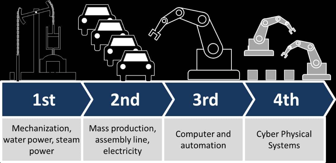 stages its development as indicated Industries 1.0, 2.0, 3.0, 4.0