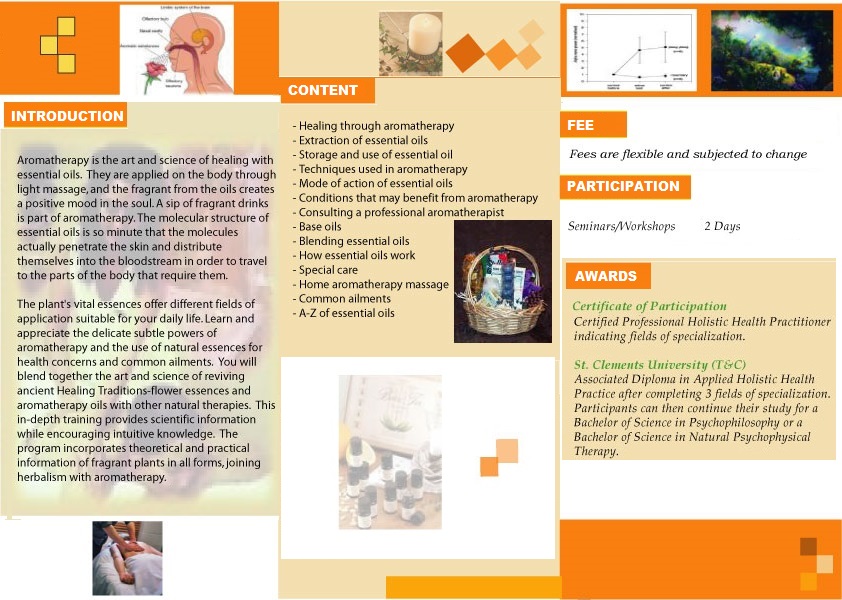 3. Aromatherapy 9. Holistic Health Marketing 15. Traditional Thai Massage